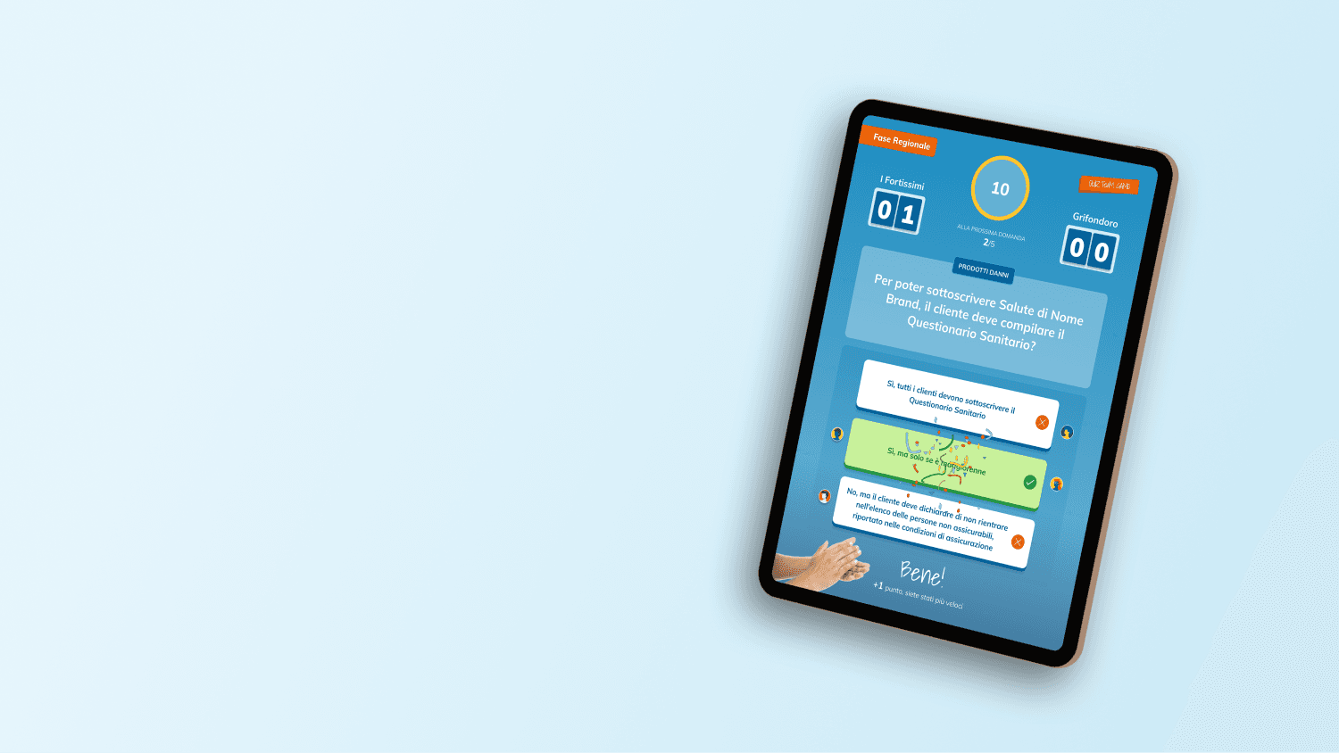 For a leading Italian insurance company, we designed and delivered a gamified training experience for employees through a native iPad app. The goal was to boost engagement, foster a sense of community, and modernize internal learning using game dynamics and digital tools.
